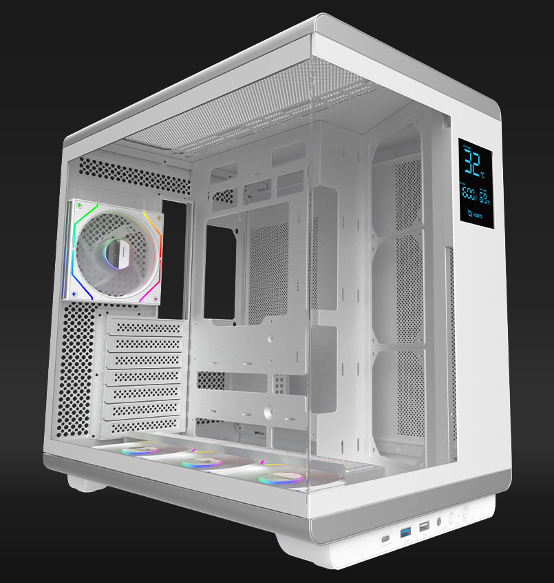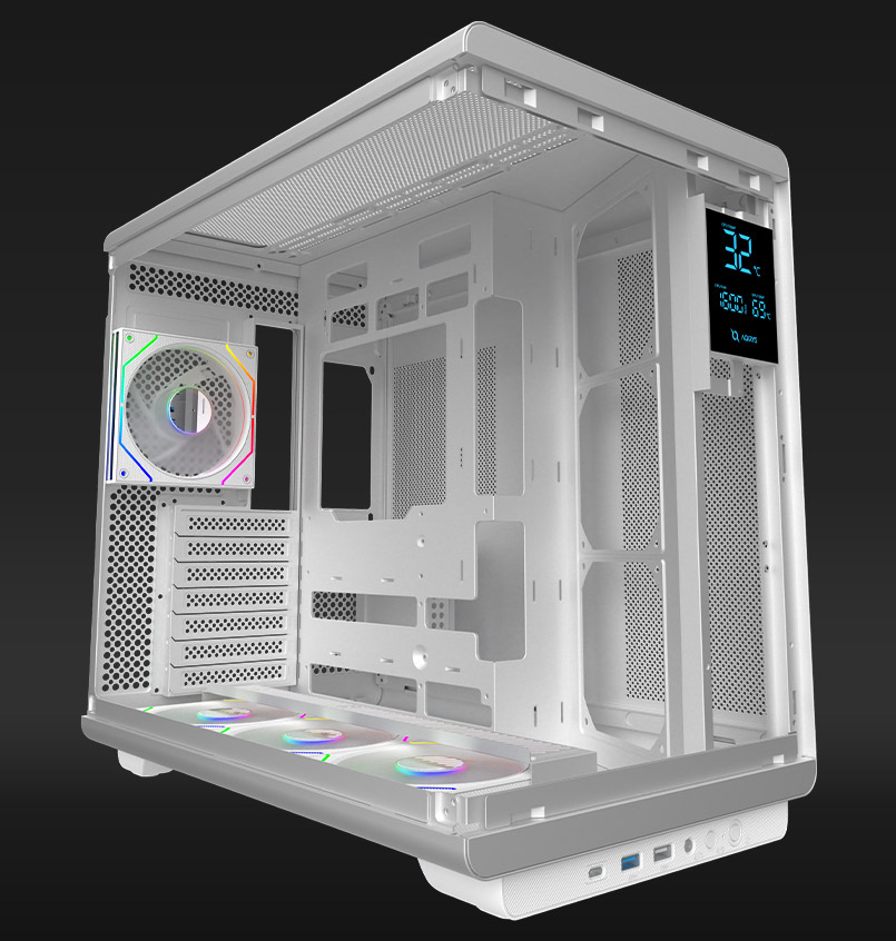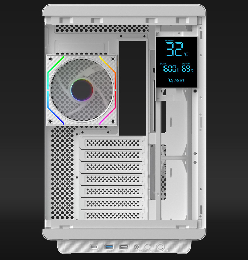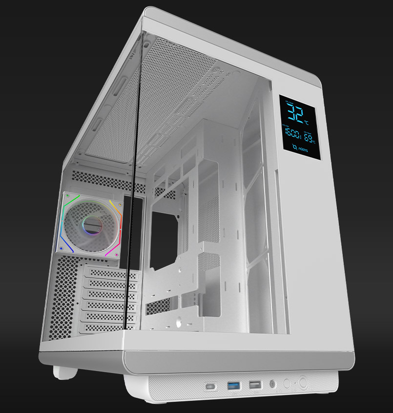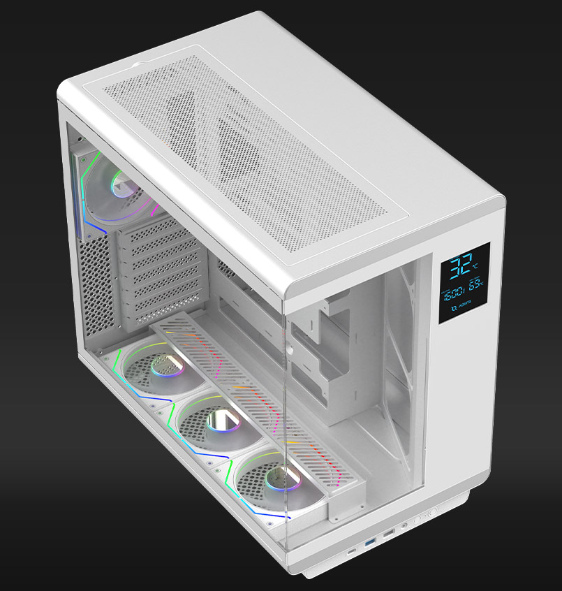 - Installed fans: 4 pieces – Rear 1x 120 mm (ARGB), Bottom 3x 120 mm (ARGB, Reverse blade)