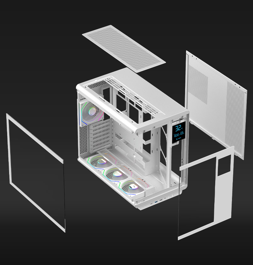 - Materials: Tempered Glass (front and left side panel), 0.8 mm SPCC steel, ABS