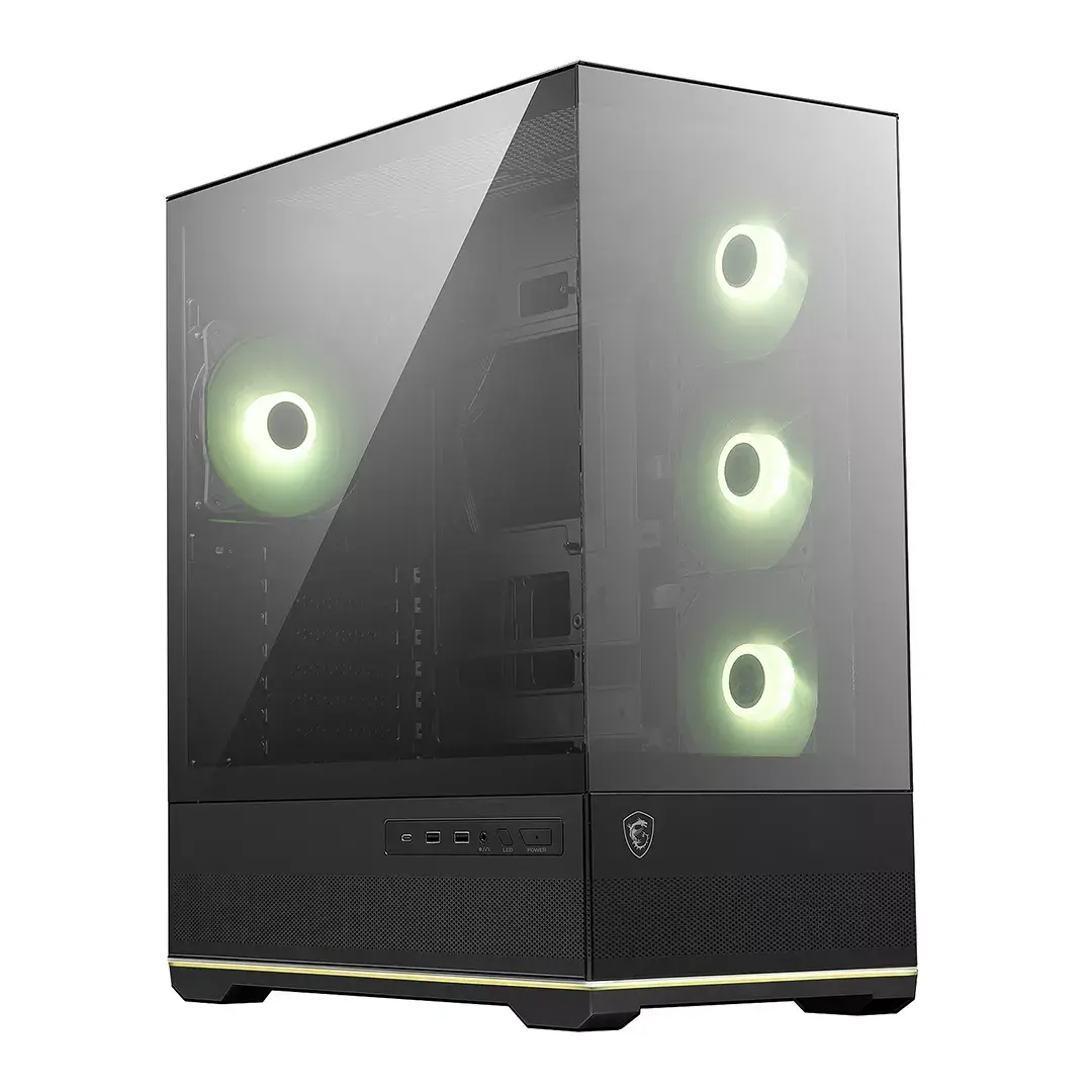 Avec ses dimensions de 420 × 225 × 485 mm, le MAG PANO 110R offre un format idéal pour les bureaux gaming modernes. Son panneau latéral panoramique, couplé à une façade en verre trempé, crée un effet vitrine sur votre configuration, parfait pour un setup RGB complet .