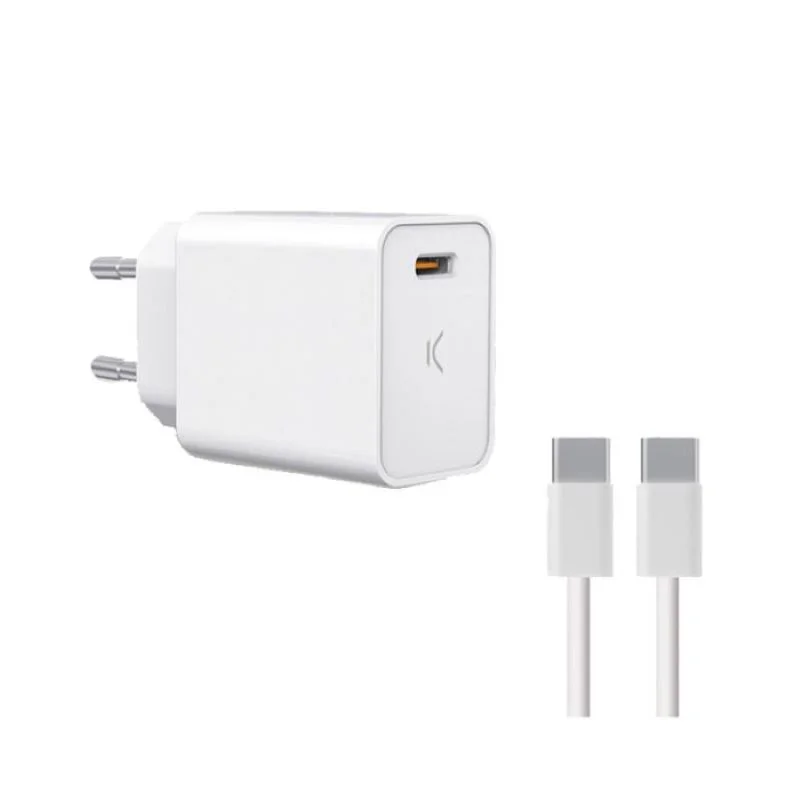 Chargeur KSIX 20W PD + Câble USB C -USB C Blanc – B1740CDC20PD