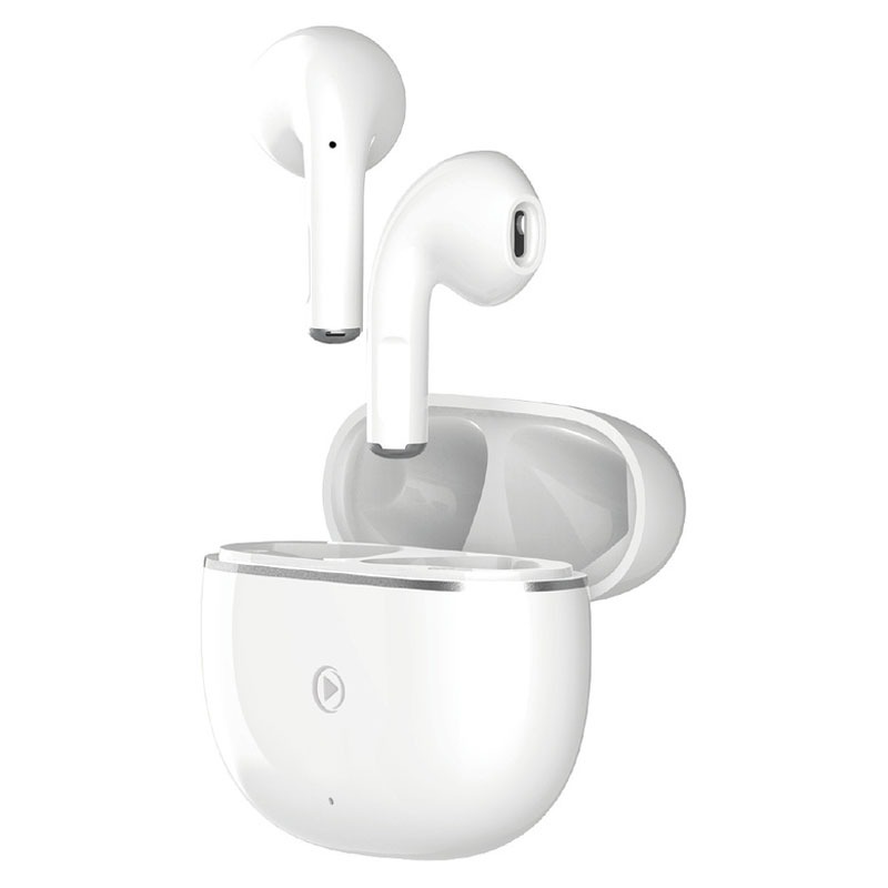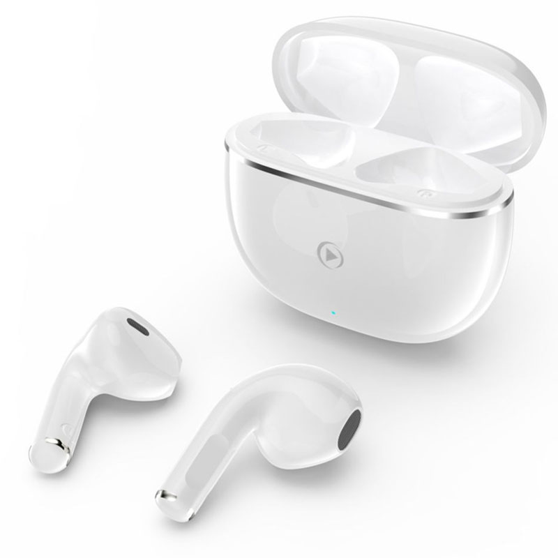 Écouteurs Sans Fil FORCE PLAY True Wireless – Technologie de connectivité: Bluetooth 5.3 – Qualité de son optimale – Capacité de la batterie: 30mAh (écouteur), 280 mAh (boîtier) – Autonomie combinée 20h: jusqu’à 4 heures(écouteurs), 16 heures (avec boitier) – Temps de charge: 2 heures – Assistants vocaux Siri et Google – Contrôle tactile – Qualité sonore HD – Résistance aux éclaboussures et à la transpiration: IPX4 – Portée Bluetooth: jusqu’à 15m – 100% de plastique recyclé – Couleur: Blanc