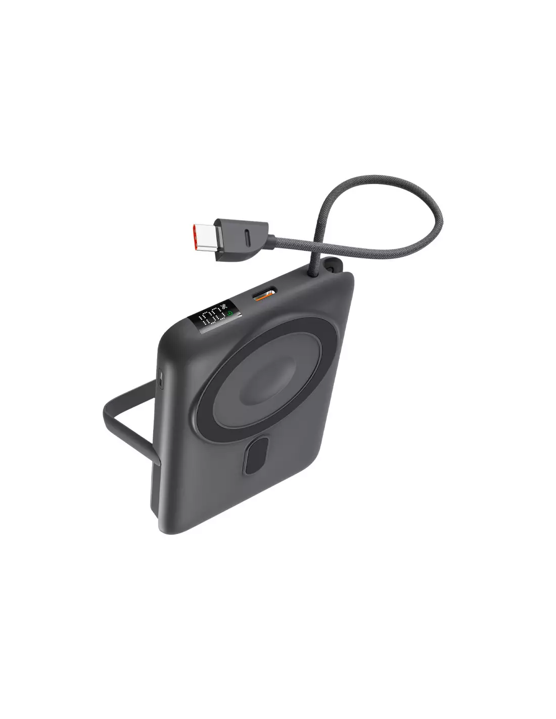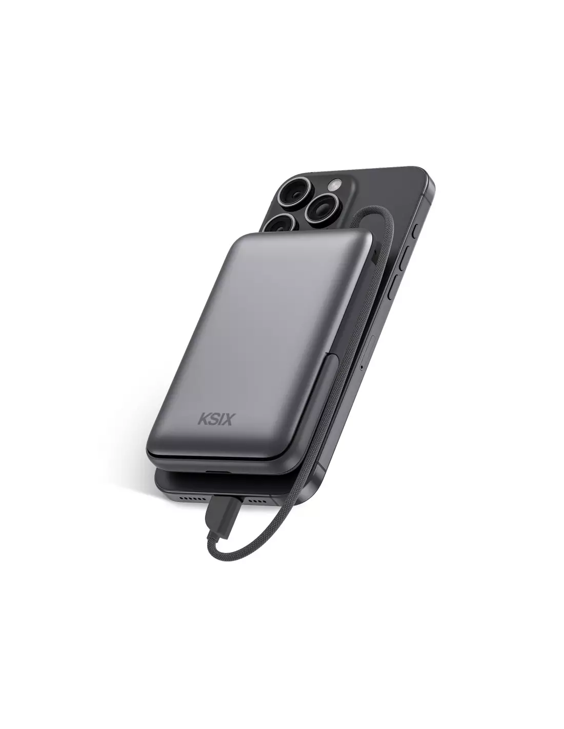 Le Power Bank KSIX 10 000mAh est la solution ultime pour recharger vos appareils rapidement et en toute commodité. Conçu pour une polyvalence maximale, il est doté d’une fonction de charge sans fil compatible avec les modèles Apple® (iPhone 12® et modèles ultérieurs) et les modèles Android® compatibles pour les smartphones et autres appareils compatibles, et il est également compatible avec toutes les séries de montres Apple® Watch. Sa conception magnétique permet une fixation sûre et stable à votre iPhone®, ce qui en fait l’accessoire parfait pour tous les jours. Et comme si cela ne suffisait pas, il comprend un câble USB-C avec Power delivery intégré pour une recharge à 22.5W.