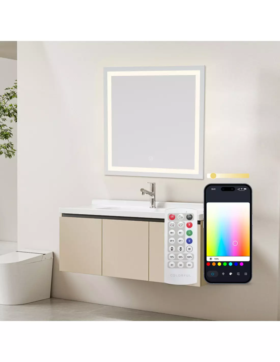 KSIX Aqua Smart Mirror, anti-buée 70×70 cm, Haut-parleur intégré, RVB + blanc chaud, 1 300 lm, 36 W, Tuya App