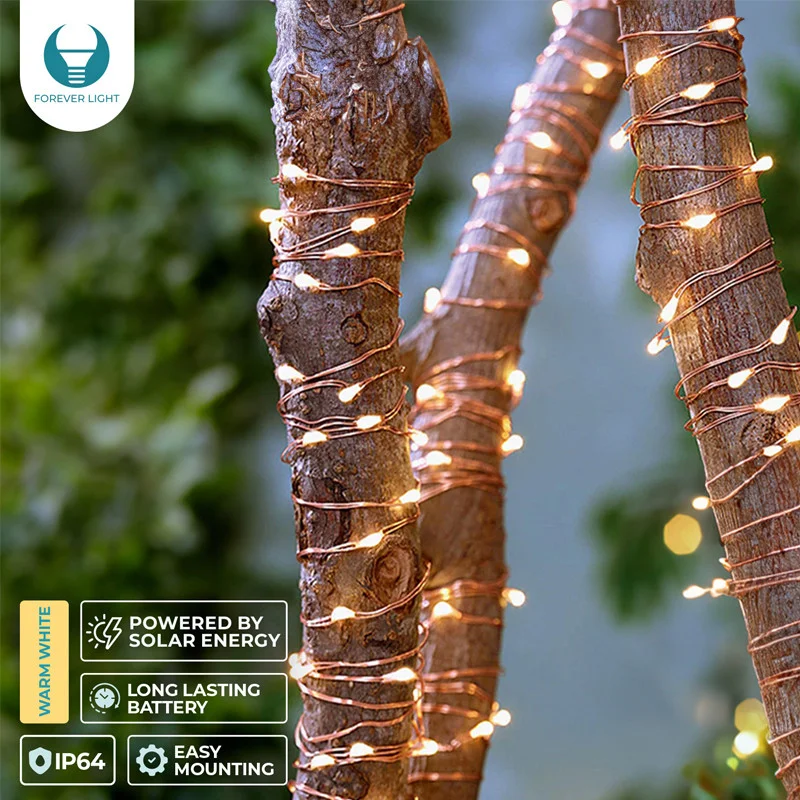Lampe solaire LED Forever Light SUNARI FLS-82 – Longueur Fil de cuivre : 22 m – Nombre de diodes : 200 pièces – Capacité de la batterie : 600 mAh – Alimentation électrique : panneau solaire – Indice d’étanchéité IP44 – Poids net : 140 g – Garantie 1 an