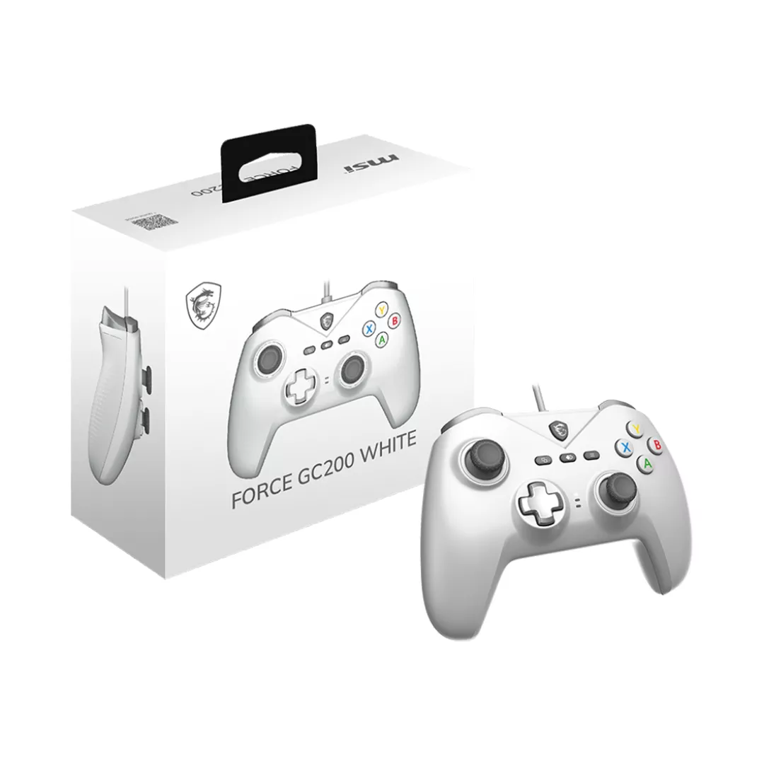 Manette de Jeu Filaire MSI FORCE GC200 – Connectivité: Filaire – Interface: USB 3.0 – Système d’exploitation: Windows 10 et versions ultérieures, Android 8 et versions ultérieures – Longueur du câble: 2 mètre – Dimensions: 155 x 107 x 64 mm – Poids: 265 g – Couleur: Blanc – Garantie: 1an