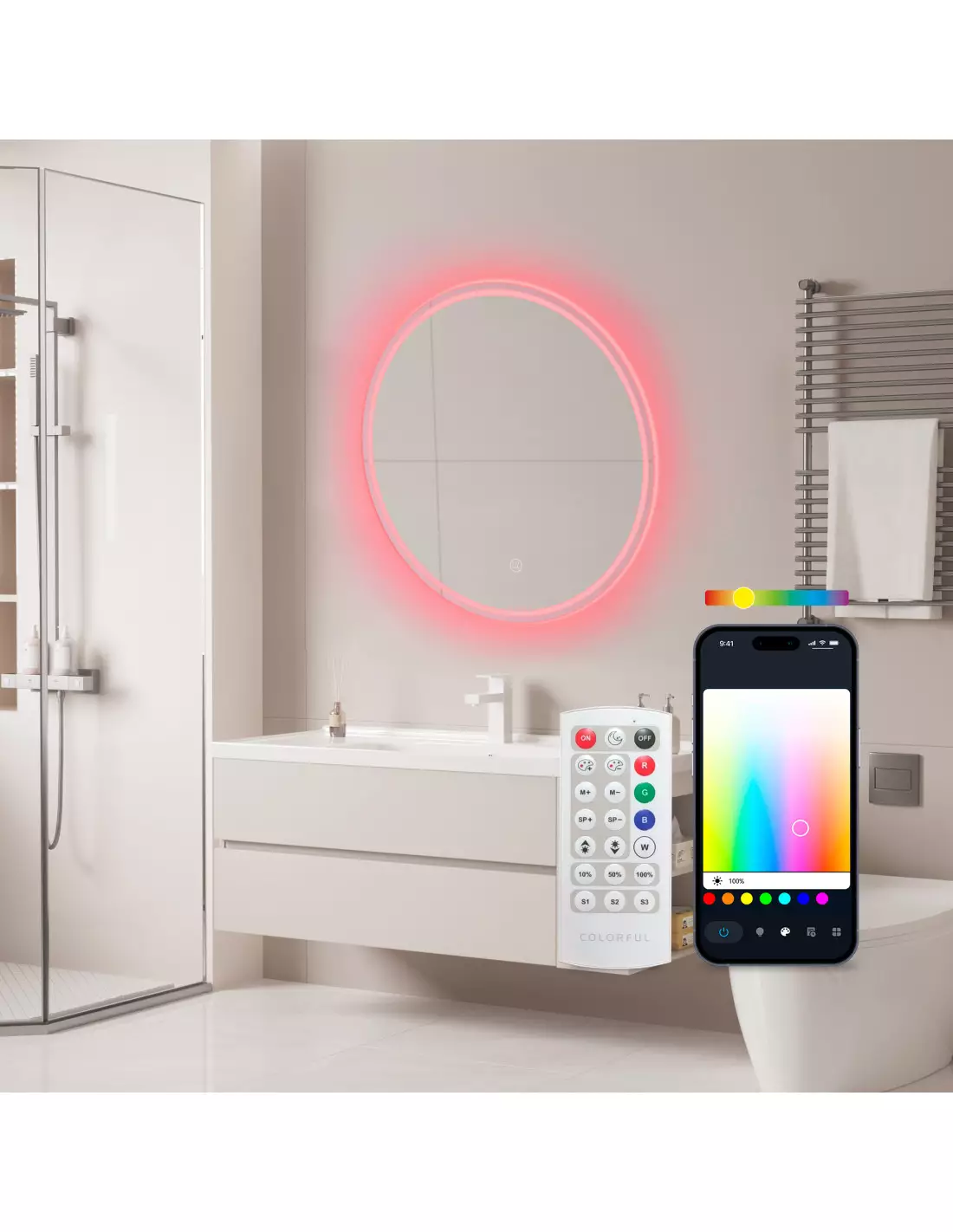 Miroir intelligent KSIX Oasis – Puissance : 36 W – Puissance du haut-parleur : 3 W – Flux lumineux : 1 000 lm – Température de la lumière: 3,000K – Température de fonctionnement : – 20 a +40°C – Couleur LED : RGB + Blanc chaud – Nombre de LED : 126 (RGB) + 126 (Blanc chaud) – Durée de vie : 30.000 h – Angle de foudre : 110° – Note de protection : IP44 – Puissance maximale transmise dans les gammes de fréquences : 6 dBm – Poids : 6 kg – Connectivité : Wi-Fi (Fonctionne avec Alexa et Google Assistant) – Compatibilité : Android 4.4 / iOS 8.0 et versions ultérieures – Matériel : Verre + Aluminium – Garantie 1 an, App Tuya SmartDisponible sur commande