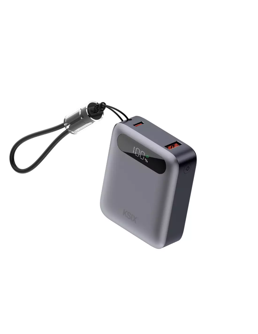 image de logo ksix22.5W Fast Charging PD, Charge simultanée, Convertible USB-C + Loop Câble, Affichage LED, Gris